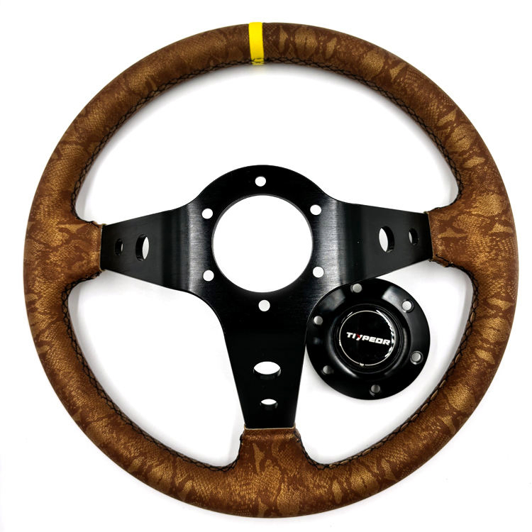 Tiypeor Universal Customizable Yellow Leather Center Joint 350mm Drift JDM Steering Wheel