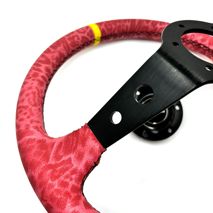 Tiypeor Custom Embroidered Red Camouflage Leather Modified Drift JDM Steering Wheel